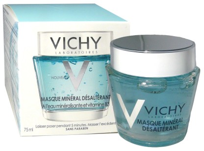 La gamme Masque minéral de VICHY est composée de soins sans paraben riche en Eau thermale Minéralisante de VICHY pour redonner de la beauté et de l'éclat à toutes les peaux du visage même sensibles. Le masque Minéral désaltérant composé de viamine B3 associé à la glycérine, et riche en Eau Thermale Minéralisante de Vichy hydrate intensément, rafraîchit et apaise la peau. Sa texture gel-frais enveloppe le visage de fraîcheur et parfumé aux notes fraiches et délicates de thé vert, jasmin et bambou. La peau est très souple fraîche et intensément hydratée dès la première utilisation. Utilisation après utilisation, le visage retrouve son éclat naturel, la peau sa vitalité et son confort.