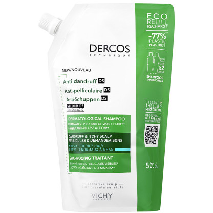 VICHY DERCOS SHAMPOOING ANTI-PELLICULAIRE RECHARGE 500ML, en vente en ligne sur le site de votre parapharmacie à prix discount. Découvrez le shampooing anti-pelliculaire VICHY DERCOS, un produit de qualité issu du laboratoire Vichy.