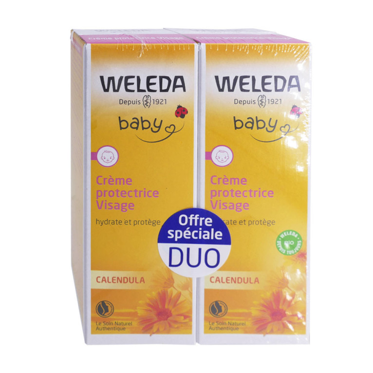 Découvrez la crème protectrice visage Weleda Baby Bio Calendula lot de 2X50ml en vente en ligne sur le site de votre parapharmacie à prix discount.