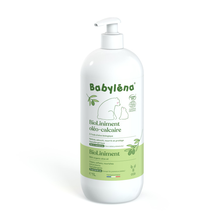 BioLiniment de BABYLENA, le liniment bio qui nettoie et protège les fesses de bébé.