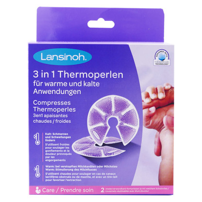 LANSINOH développe des produits innovants spécialement conçus pour réussir l’allaitement en toute sérénité. Les compresses thermoperles 3 en 1 de LANSINOH peuvent être utilisés chaudes, froides ou en complément avec un tire-lait. Utilisées chaudes, elle soulageront les engorgements, les mastites et les canaux lactifères bouchés afin de procurer une descente de lait tout en douceur. Utilisées froides, les compresses soulageront les douleurs et gonflements du sein causés par les engorgements. Avec un tire-lait, elle faciliteront la descente du lait et ainsi diminuer le temps d’utilisation ; les compresses s’adaptent avec n’importe quel tire-lait. Les perles de gel sont non toxiques et ainsi permettent au thermo perles de rester souple même s’il est congelé.
