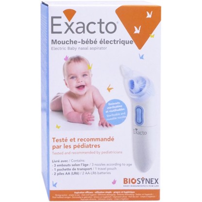 Le mouche bébé électrique d'Exacto discount, le mouche bébé facile d’utilisation pour moucher le bébé dès la naissance tout en douceur, dans votre parapharmacie en ligne à prix discount