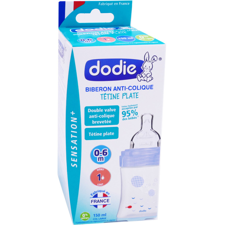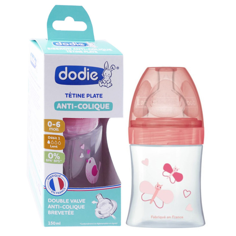 DODIE BIBERON ANTI-COLIQUE TETINE PLATE 150 ML 0-6 MOIS