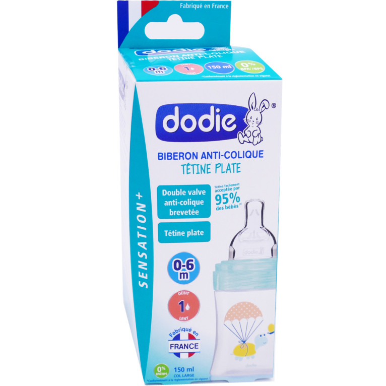 DODIE BIBERON ANTI-COLIQUE TETINE PLATE 150ML DEBIT 1