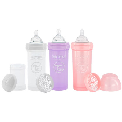 TWISTSHAKE COFFRET 3 BIBERONS ANTI COLIQUE 260ML BLANC VIOLET ROSE
