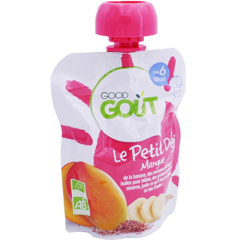 Découvrez la nouvelle marque française d’alimentation biologique sans produits chimiques ni pesticides ni OGM, à base de fruits et de légumes savoureux : GOOD GOUT. Spécialisée dans la conception de produits délicieux, GOOD GOUT vous assure qualité nutritionnelle, saveurs naturelles et plaisirs gustatifs pour régaler les enfants dès le plus jeune âge ! Lorsque vient l’âge de la diversité alimentaire, Bébé est avide de nouvelles saveurs et de textures différentes. Les Gourdes Petit Déj’ qui est riche en DHA, fibres, vitamine C, et ne contenant pas d’ingrédients nocifs, régaleront les papilles des plus jeunes ! Elle contient seulement de la mangue gourmande et de la banane accompagné d’un mélange de 6 huiles pour bébé avec des graines de lin et de sésame, et une goutte de jus de citron pour une touche acidulée, qui plairont aux enfants. En gourdes, le Petit Déj’ s’emportent partout avec soi pour répondre aux envies gourmandes des petits et accompagner le lait infantile ou maternel !