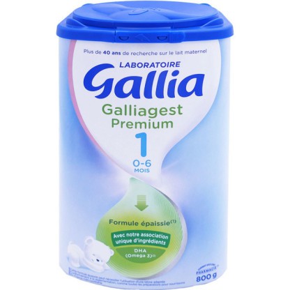 GALLIA spécialiste du lait infantile depuis 60 ans, développe en collaboration avec des spécialistes de la petite enfance (pédiatres, nutritionnistes…) une large gamme de laits infantiles se rapprochant au mieux du lait maternel, pour offrir aux bébés une alimentation adaptée à leur développement, prévenir ou traiter les petits troubles nutritionnels des nourrissons. GALLIAGEST Premium 1er âge de GALLIA est spécialement formulé pour l’alimentation des nourrissons de 0 à 6 mois au système digestif encore immatures, sujet aux troubles légers comme les coliques, la constipation ou les régurgitations. Ce lait, à la consistance épaissie, est riche en oméga 3 (DHA) et va rétablir le confort digestif du nourrisson tout en apportant les éléments essentiels à son développement harmonieux.
