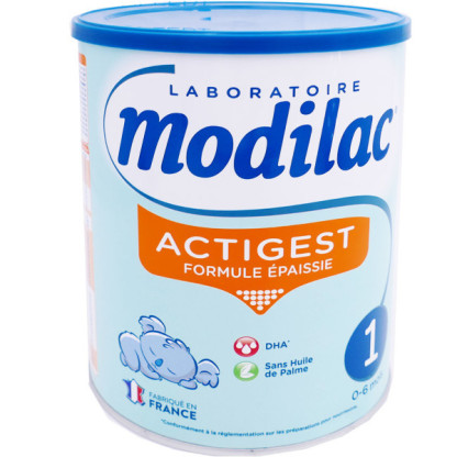 MODILAC est une marque de lait infantile crée en 1984 par le laboratoire SODILAC, spécialement conçue pour offrir un large choix de laits s’approchant au mieux du lait maternel, et répondre aux différents besoins nutritionnels des nourrissons pour accompagner leur croissance de façon harmonieuse. Le lait en poudre Actigest 1 de MODILAC est formulé pour apporter tous les éléments nutritionnels essentiels au développement des bébés. Une formule sans huile de palme à base de DHA, un acide gras essentiel de la même famille que les Omégas 3. Un lait épaissi à l’amidon avec des ferments lactiques conçu pour limiter les régurgitations et pour favoriser le développement d’une flore intestinale protectrice.