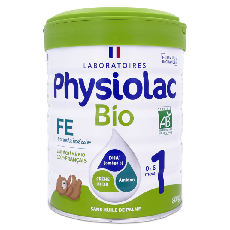 PHYSIOLAC BIO FE LAIT 1ER AGE 800G : une formule épaissie avec de l'amidon de maïs bio pour le confort de votre bébé, en vente en ligne sur le site de votre parapharmacie à prix discount. Offrez à votre enfant une nutrition de qualité grâce à ce lait spécialement conçu pour les nourrissons de 0à 6 mois, lors de régurgitations.