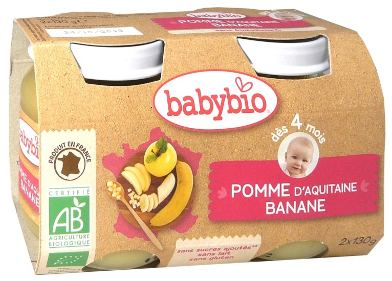 Les Petits pots Pomme-Banane de BABYBIO, un bon dessert ou goûter à utiliser chez les tout-petits à partir de 4 mois pour commencer à diversifier leur alimentation tout en douceur.