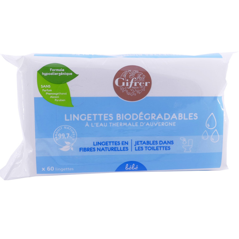 Les lingettes Biodégradables À L’Eau Thermale D’Auvergne discount de GIFRER, la santé au quotidien dans votre parapharmacie en ligne à prix discount, dans un soin conçu pour l’hygiène de la peau délicate de toute la famille (nourrissons, enfants, adultes) qui respecte l’environnement. Siège, visage, mains.