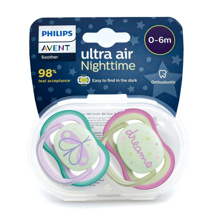 AVENT SUCETTES ULTRA AIR ORTODONTIC NIGHT TIME 0-6 MOIS