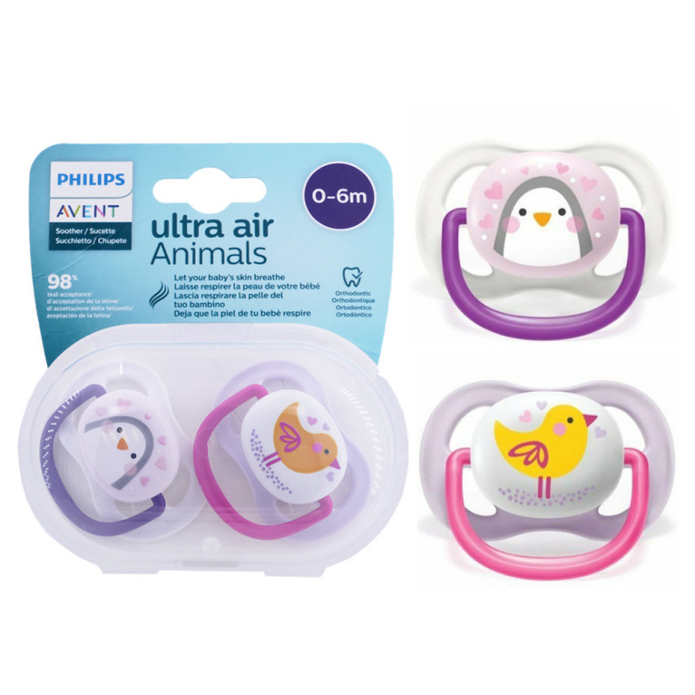 Les sucettes Ultra Air en silicone à prix discount AVENT, les sucettes aérées, qui apaisent et rassurent les bébés de 0 à 6 mois à la peau sensible tout en respectant le développement de la bouche, dans votre parapharmacie en ligne discount. Coloris et Motifs selon disponibilité