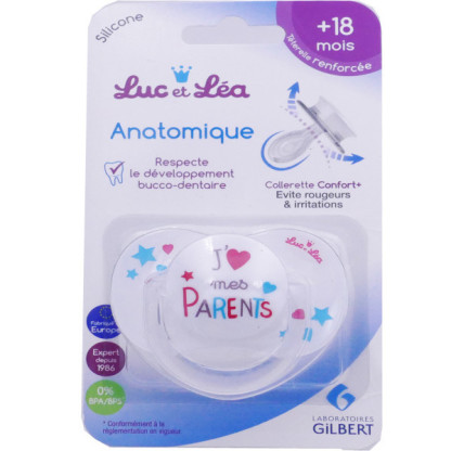 LUC & LEA SUCETTE ANATOMIQUE SILICONE "J'AIME MES PARENTS"