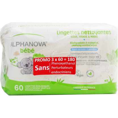 ALPHANOVA BEBE 3X60 LINGETTES PEAUX NORMALES & SENSIBLES PACK : Découvrez ces lingettes pour bébé en vente en ligne sur le site de votre parapharmacie à prix discount.