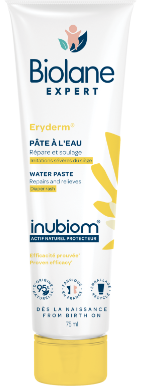 La marque française BIOLANE des laboratoires Biopha basé en Vendée, développe depuis près de 50 ans des produits sûrs, efficaces, aux formules les plus naturelles possibles pour prendre soin de la peau sensible des bébés. La Pâte à l’eau Eryderm à la formule haute tolérance à base d’oxyde de zinc, glycérine et panthénol, est une préparation traditionnelle spécialement conçu pour réparer, protéger, et apaiser la peau du siège de bébé irritée. Enrichi en Inubiom, actif d’origine végétale qui est un sucre issu de chicorée, la crème va rééquilibrer le microbiote cutané pour une peau protégée. Elle va protéger la peau fragile en prenant soin du film protecteur en la régénérant, soulager des irritations et rougeurs qui peuvent être causées par les couches, les selles et l’urine en absorbant l’excès d’humidité, et apaiser des irritations et rougeurs. Après le soin, la peau de bébé est apaisée et protégée de rougeurs et irritations. Sans parabènes, ni phenoxyethanol, ni phtalates, ni MIT, ni alcool. Testé sous contrôle pédiatrique.