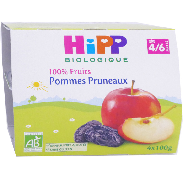 Les Fruits Bio en coupelles discount de HiPP Biologique, démarrer la diversification alimentaire en douceur dans votre parapharmacie en ligne à prix discount, avec ces coupelles au bon fruit gourmands pour faire découvrir de nouvelles saveurs aux bébés, dès 4/6 mois Pomme Pruneaux