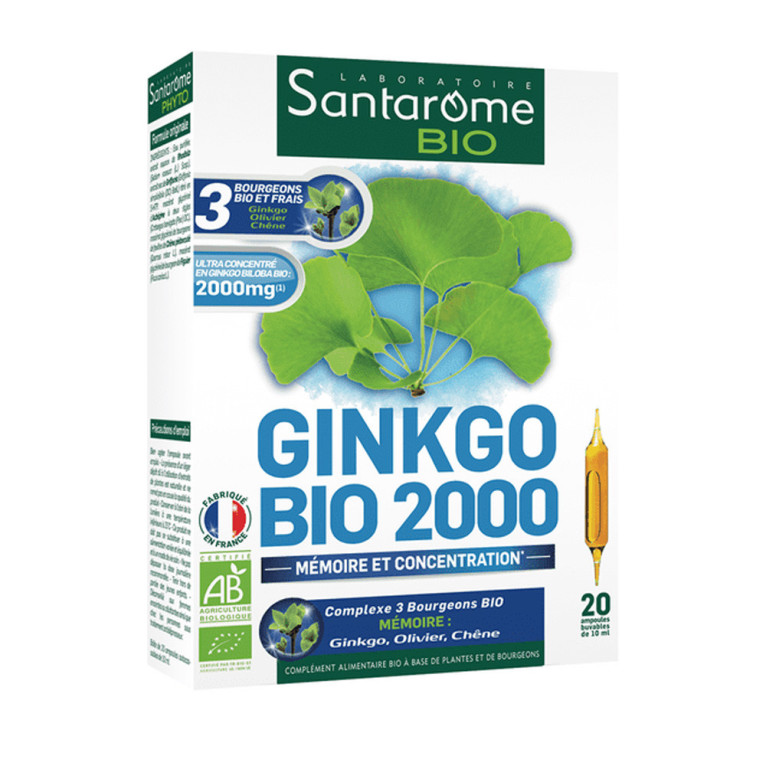 SANTAROME BIO GINKGO BIO 2000 20 AMPOULES est un complément alimentaire en vente en ligne, sur le site de votre parapharmacie à prix discount.