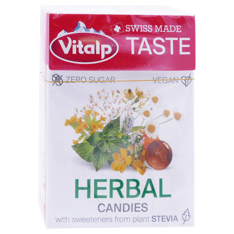 bonbons pastilles VITALP sont formulés à base d'herbes des Alpes Suisses sélectionnées avec soin pour leurs saveurs originales. Leur formule sans sucres aux arômes naturels, est idéale pour les personnes soucieuses de leur ligne. Chaque bonbon pastille renferme une combinaison unique d'herbes des Alpes Suisses pour éveiller les sens. Son goût naturel procurera plaisir et fraîcheur pour ravir les plus gourmands ! Profitez dès maintenant des avantages des plantes avec les bonbons pastilles sans sucres VITALP. Leur format pratique vous permet de les emporter partout avec vous, pour une sensation de bien-être à tout moment de la journée.