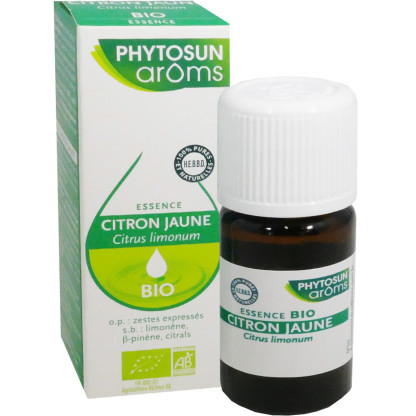PHYTOSUN AROMS Huile essentielle de Citron Jaune Bio des laboratoires PHYTOSUN AROMS, à prix discount dans votre pharmacie en ligne, une huile essentielle 100% pure et naturelle en complément alimentaire.