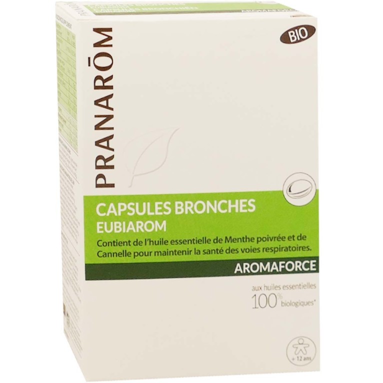 Aromaforce Capsules Bronches Eubiarom de PRANAROM discount, les bienfaits des huiles essentielles en complément alimentaire dans votre parapharmacie en ligne à prix discount, pour soulager les voies respiratoires encombrées et retrouver un bon confort respiratoire.