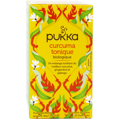 Ce produit de la marque Pukka est un mélange d'infusion tonifiant du meilleur curcuma, gigembre et galanga, idéal pour apporter une touche de tonus à votre journée. Les sachets d'infusion sont pratiques et faciles à utiliser, vous permettant de profiter des bienfaits de ces plantes aux propriétés stimulantes et revitalisantes. Le curcuma est associé au gingembre et au galanga pour une infusion délicieusement épicée et réconfortante. Offrez-vous un moment de bien-être et de vitalité avec le PUKKA CURCUMA TONIQUE BIO SACHETS D'INFUSION.