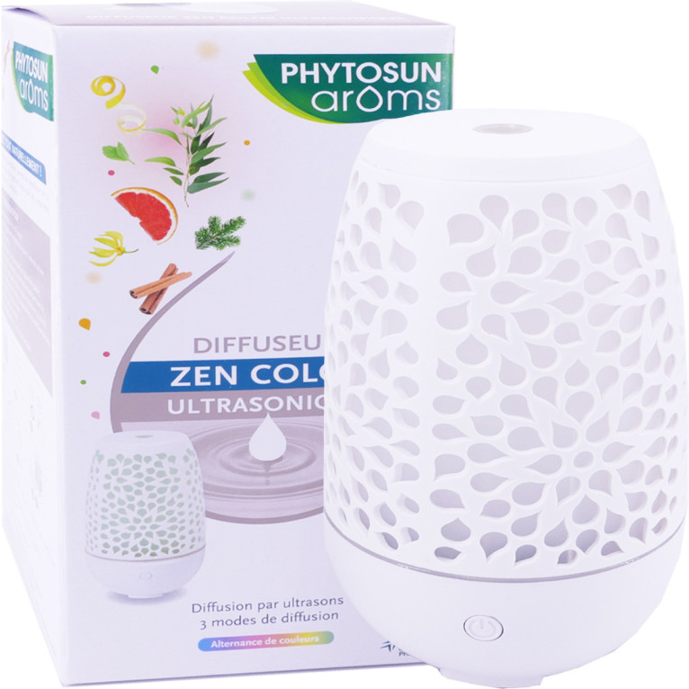 PHYTOSUN AROMS Diffuseur Zen Color Ultrasonique discount, l’expertise en aromathérapie dans votre parapharmacie en ligne à prix discount, pour ce diffuseur qui favorise la libération des huiles essentielles dans l’atmosphère pour profiter de tous leurs bienfaits naturels.