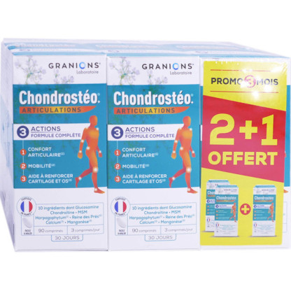 Chondrosteo Articulations discount de GRANIONS, le complément alimentaire pour le bien être et la mobilité articulaire grâce aux extraits d'harpagophytum, de Reine des près, de calcium et manganèse, dans votre parapharmacie en ligne à prix discount