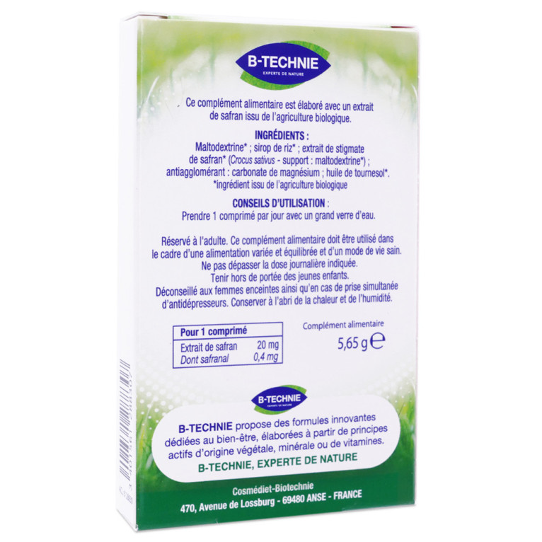 B-TECHNIE SAFRAN 30 COMPRIMÉS est disponible en vente en ligne sur le site de votre parapharmacie à prix discount.