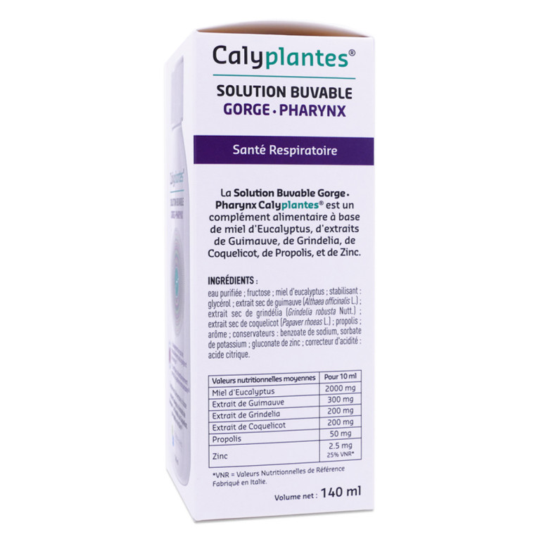 N'attendez plus pour découvrir les avantages de CALYPLANTES SOLUTION BUVABLE GORGE PHARYNX et offrez à votre gorge le soutien qu'elle mérite !