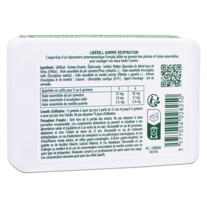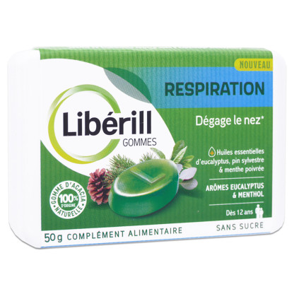 LIBÉRILL RESPIRATION GOMMES 50G AROME EUCALYPTUS & MENTHOL est disponible en vente en ligne sur le site de votre parapharmacie à prix discount.