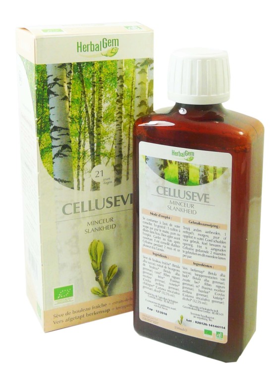 Celluseve BIO d’HERBALGEM, est un complément alimentaire à base de sève de bouleau, récoltée au printemps en Ardenne belge, et de bourgeons de frêne qui aident à la perte de poids. Des bourgeons de cassis et de bouleau viennent compléter ce produit et participent au drainage du corps.