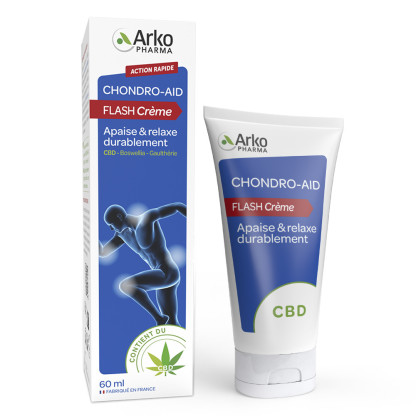 Chondro Aid FLASH Crème discount d’ARKOPHARMA, la crème de massage, conditionnée sous forme de tube à base de CBD, boswellia, gaulthérie, arnica, disponible dans votre parapharmacie en ligne à prix discount.