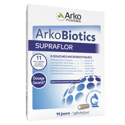 Supraflor Ferments lactiques d’ARKOPHARMA dans votre parapharmacie en ligne à prix pas cher, le complément alimentaire sous forme de gélules à partir de 6 ans.