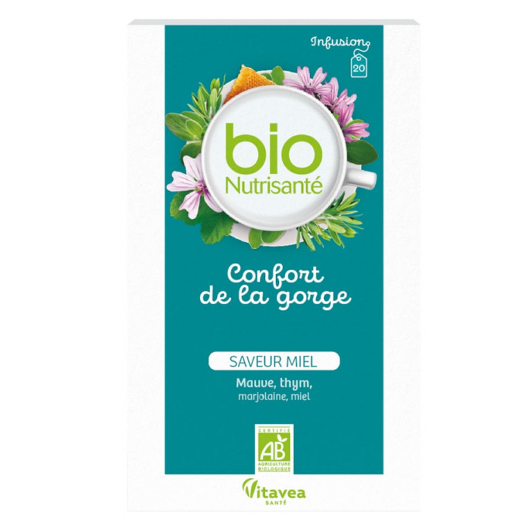 Découvrez les infusions NUTRISANTE BIO CONFORT DE LA GORGE, spécialement conçues pour apaiser les irritations et les maux de gorge. Elles sont élaborées par le laboratoire Nutrisanté, expert en phytothérapie depuis plus de 25 ans. Ces infusions bio sont composées d'ingrédients naturels tels que la mauve ,le thym, la marjolaine et l'arôme de miel. Profitez d'un moment de détente tout en prenant soin de votre gorge avec les infusions NUTRISANTE BIO CONFORT DE LA GORGE.