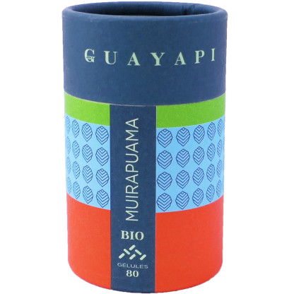 GUARAYAPI est un laboratoire qui développe des produits, compléments alimentaires et super-aliments à partir de matières premières biologiques et d’actifs 100% naturels issue des terres d’Amazonie et du Sri Lanka qui respectent la biodiversité et les hommes. Ces produits sont principalement à base de waranà appelé aussi guarnà pour ses vertus stimulantes physiques et intellectuelles. MUIRAPUAMA Bio est un super-aliment qui va redonner du tonus lors de fatigue physique ou problème sexuel masculin, calmer les effets de la ménopause (irritabilité, bouffées de chaleur,…), préparer à une épreuve sportive pour donner de l’énergie. Le Muirapuama (ou « bois bandé ») est un arbre originaire des forêts brésiliennes dont la feuille issu de cueillette sauvage est récolté par les indiens Sateré Mawé, et préparé selon les méthodes traditionnelles et respectueuses de l’environnement. Naturel et biologique, il ne contient ni conservateur, ni additif.