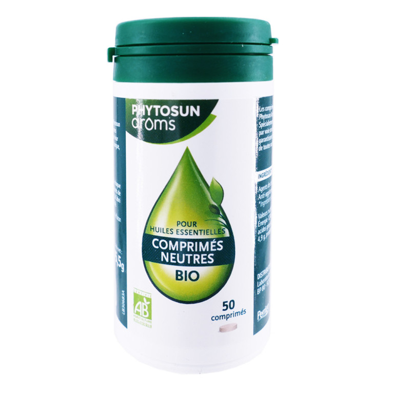 PHYTOSUN AROMS COMPRIMES NEUTRES BIO POUR HUILES ESSENTIELLES 50 COMPRIMES est disponible en vente en ligne à prix discount.
