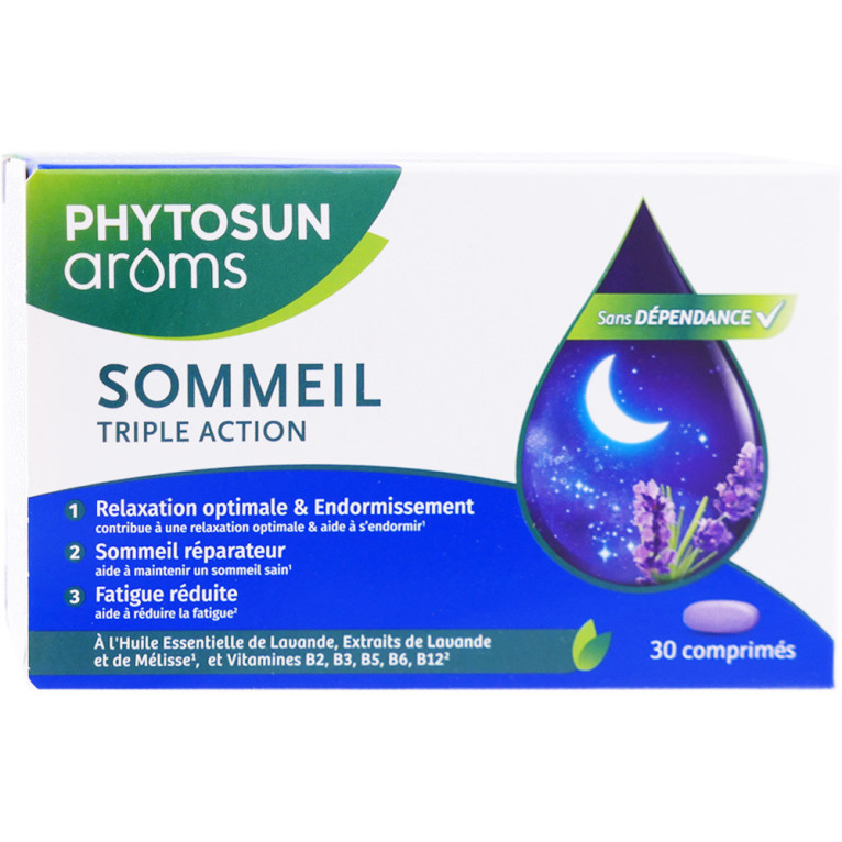 PHYTOSUN AROMS SOMMEIL TRIPLE ACTION 30 COMPRIMES est disponible en vente en ligne à prix discount.