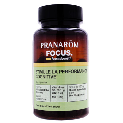 PRANAROM AROMABOOST FOCUS PERFORMANCE COGNITIVE 60 CAPSULES est disponible en vente en ligne à prix discount.