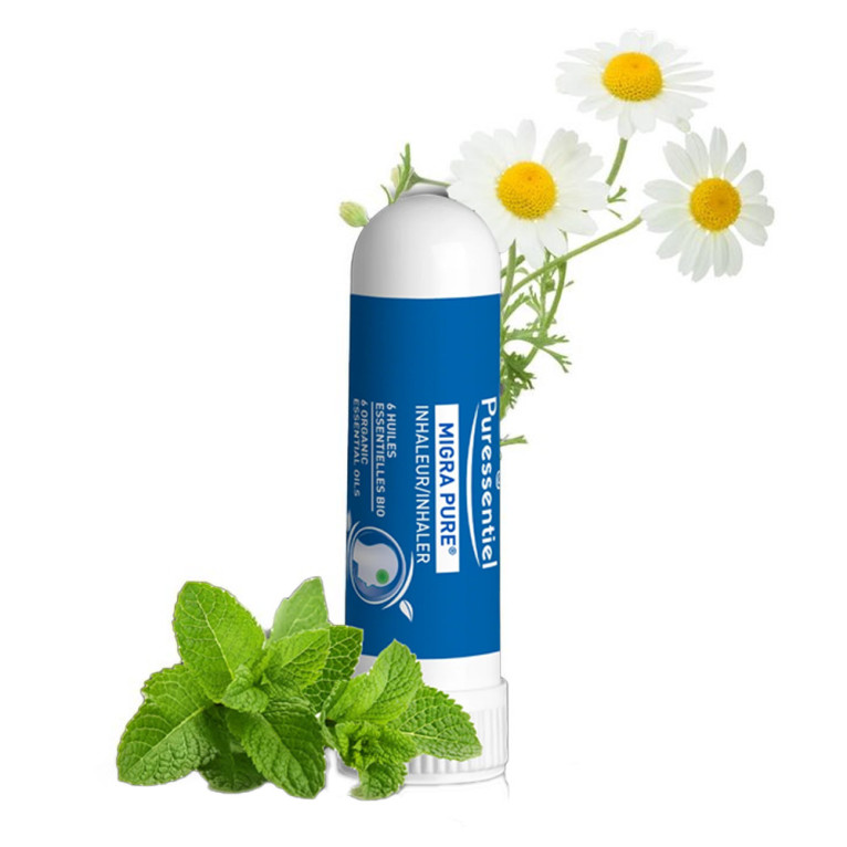 Le Migra Pure Inhalateur de Puressentiel est en vente en ligne sur le site de votre parapharmacie à prix discount. Ce produit est un inhalateur à base de 6 huiles essentielles bio pour calmer les maux de tête et les migraines.
