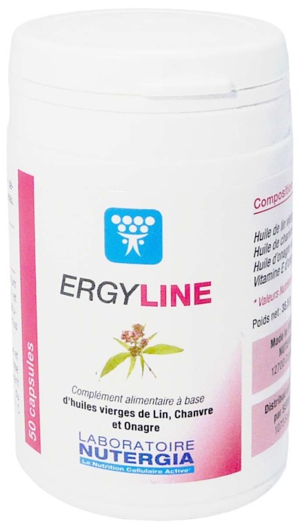ERGYLINE est un complément alimentaire composé d’huiles vierges végétales de chanvre, de lin, d'onagre, de romarin et de vitamine E, La vitamine E contribue à protéger les cellules de l'organisme contre le stress oxydatif.