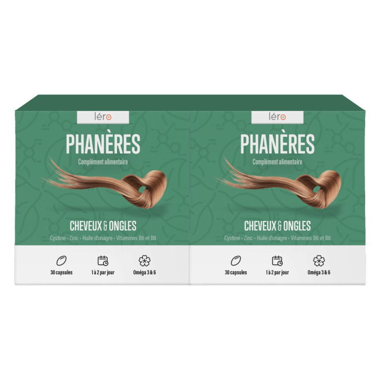 LERO PHANERES Cheveux & Ongles du Laboratoire LERO, un complément alimentaire à base d'huile d'onagre, de cystine, de vitamines et minéraux disponible dans votre parapharmacie en ligne à prix pas discount.