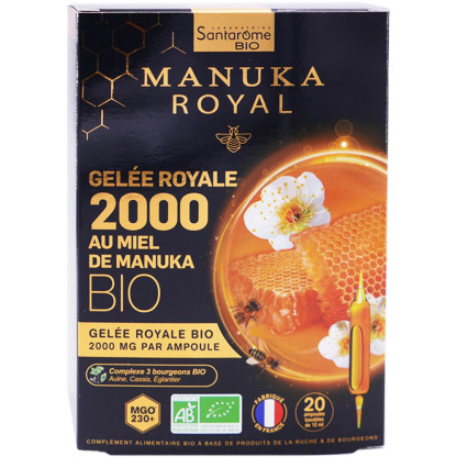 SANTAROME BIO MANUKA ROYAL GELEE ROYALE 2000 20 AMPOULES est disponible en vente en ligne à prix discount sur Pharmashopdiscount.
