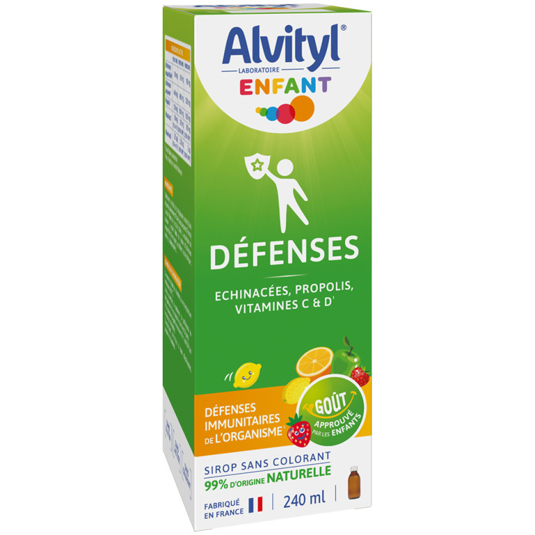 ALVITYL DÉFENSES des Laboratoires Urgo à prix discount dans votre parapharmacie en ligne est un complément alimentaire sous forme de sirop à base d'Échinacée et de vitamines C et D qui contribuent au fonctionnement normal des défenses immunitaires. A partir de 3 ans