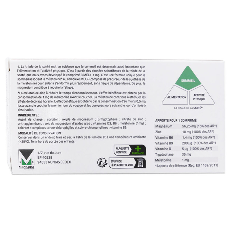 8 MEL MÉLATONINE 1MG 30 COMPRIMÉS est disponible en vente en ligne à prix discount sur Pharmashopdiscount.