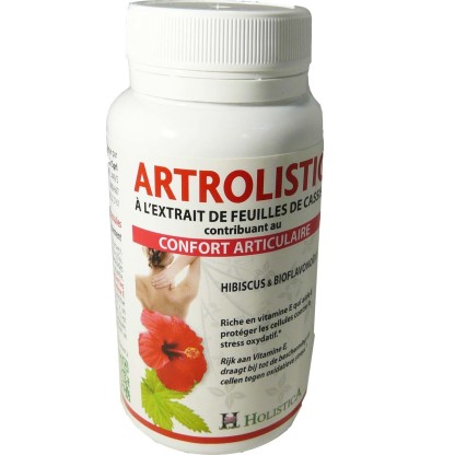 ARTROLISTIC est un complément alimentaire sous forme de capsules à avaler, composé d’extraits de feuilles de cassis (3.500mg pour 2 gélules) et d’hibiscus, de bioflavonoïdes, de péricarpes d’agrumes, de polysaccharides et vitamine E. Dans cette formule la vitamine E contribue à protéger les cellules contre le stress oxydatif.