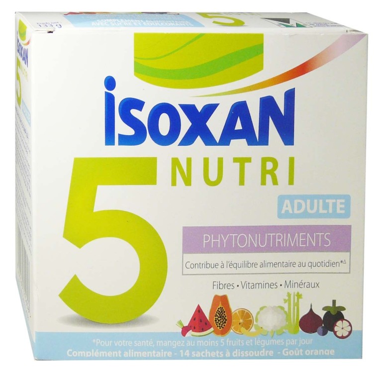 ISOXAN 5 Nutri Adulte à prix discount, le complément alimentaire innovant sous forme de sachets à dissoudre dans votre parapharmacie en ligne discount, destiné à équilibrer le fonctionnement de l’organisme en général, et apporter la quantité nécessaire journalière de vitamines et minéraux issues de fruits et légumes, chez les adultes.