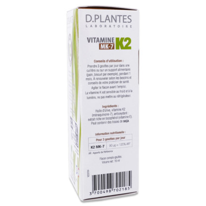 D. PLANTES VITAMINE K2 MK7 HUILE 15ML est disponible en vente en ligne à prix discount sur Pharmashopdiscount.