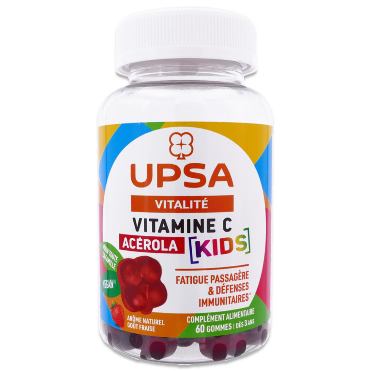 UPSA VITAMINE C ACEROLA KIDS 60 GOMMES est disponible en vente en ligne à prix discount sur Pharmashopdiscount. UPSA est un laboratoire reconnu pour son expertise en compléments alimentaires.