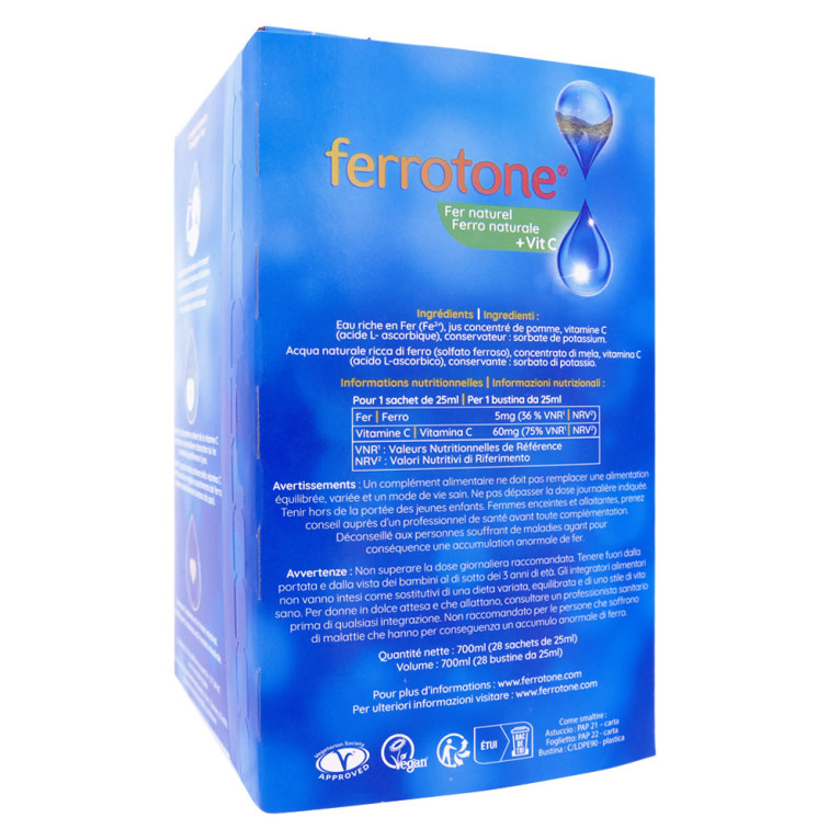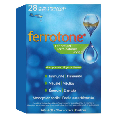 FERROTONE FER NATUREL + VITAMINE C 28 SACHETS est disponible en vente en ligne sur le site de votre parapharmacie à prix discount.